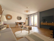 NÎMES MONTAURY APPARTEMENT 5 PIECES DE 104.67m² LC AVEC TERRASSE CAVE ASC PKG Situé dans une agréable résidence rue de Montaury, quartier verdoyant recherché en position dominante. Il s'agit d'un appartement au 1er étage avec ascenseur, il se compose d'une entrée, pièce à vivre climatisée très lumineuse avec salon et salle à manger, cuisine séparés, ouvertes sur une terrasse exposé au sud, 3 chambres dont une avec salle d'eau, salle de bains et wc indépendants. Nombreux rangements, beaux volumes, climatisation, potentiel élevé. Cave privative et parking libre dans la résidence. Bien soumis au statut juridique de la copropiété. Nombre de lots : 120 ( dont 40 appartements). Charges annuelles de copropriété (montant moyen annuel quote-part du budget prévisionnel vendeur): 2040 €.Procédure en cours : néant. Honoraires charge vendeur. Les informations sur les risques auxquels ce bien est exposé sont disponibles sur le site Géorisques : www.georisques.gouv.fr