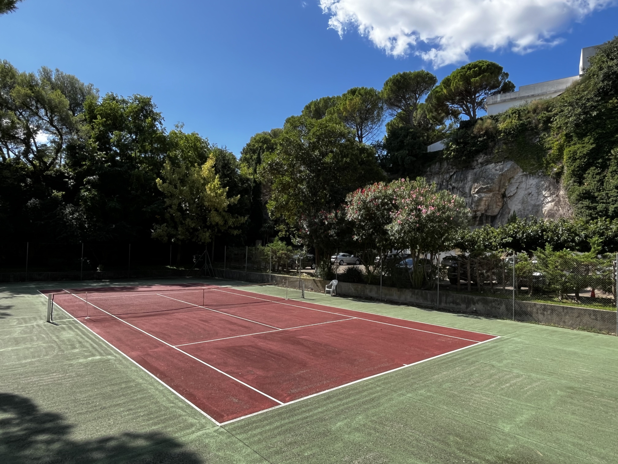 NIMES CIGALE APPARTEMENT DUPLEX T5/6 TERRASSES PISCINE TENNIS PARKING. Nous avons le plaisir de vous proposer ce magnifique appartement duplex de type 5/6, d'une superficie généreuse de 116,35 m² LC, situé dans une résidence de standing implantée au pied d'une falaise au cœur du quartier prisé de la Cigale. Profitez d'un environnement exceptionnel grâce au parc arboré, à la piscine et au terrain de tennis. Belles prestations modernes, pour ce bien composé, d'une grande pièce à vivre très lumineuse avec salon et salle à manger ouverts sur une terrasse et un balcon intimiste, cuisine équipée séparée avec accès sur l'extérieur, cellier pratique, 2 chambres en rez-de-chaussée dont une utilisée comme buanderie, salle de bains, wc séparés et 2 chambres supplémentaires avec dressing à l'étage ainsi qu'une deuxième salle d'eau. Climatisation réversible, carrelage en travertin, vue verdure et Tour Magne. Bien soumis au statut juridique de la copropriété de 276 lots dont 69 logements. Charges annuelles de copropriété : 3330 €. Procédure Néant. Les informations sur les risques auxquels ce bien est exposé sont disponibles sur le site Géorisques : www.georisques.gouv.fr. Honoraires charge vendeur.