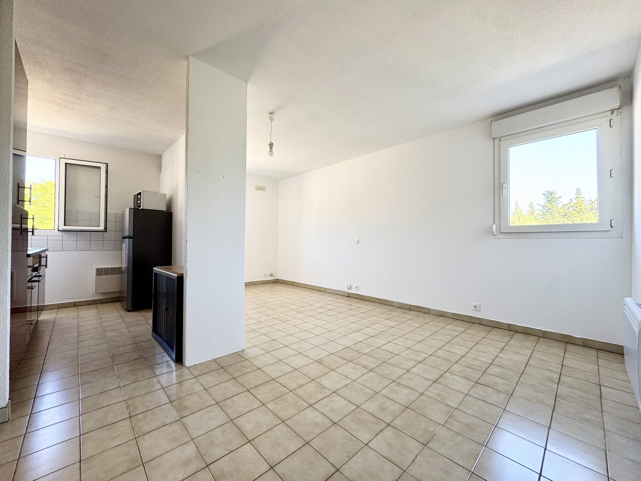 NIMES / ROUTE DE SAUVE - T1 Dans une résidence sécurisée, route de Sauve, venez découvrir cet appartement Type 1 situé au 2ème étage avec ascenseur de 36.89 m² habitables comprenant une entrée avec placard, une cuisine aménagée (hotte aspirante, plaque de cuisson, réfrigérateur-congélateur et micro-ondes) semi-ouverte sur un séjour/coin nuit avec placard et une salle de bains avec WC. Chauffage électrique. Menuiseries double vitrage. Exposition Nord-Ouest. Eau froide et ordures ménagères incluses dans les charges. Libre immédiatement. N'hésitez pas à contacter l'agence TOURDIAT GESTION au 04.66.04.82.04.
